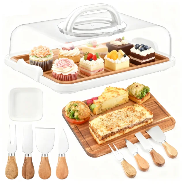 Bamboo Cheese Board Set With Clear Lid Acacia Wodod Charcuterie Board Wood Plates for Food Tray Platter with Knife